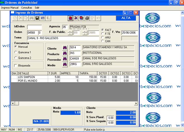 Incluye todas las características del Sistema Administrativo Contable, con el agregado del Módulo de Carga de Ordenes de Publicidad que permite la carga de las Ordenes y la posterior integración de las mismas para ser Facturadas por el Módulo Contable.